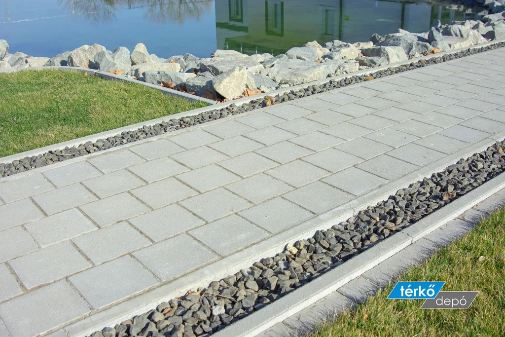 A beton szegélykő a leggyakoribb és legsokoldalúbb megoldás. Erős, tartós és a térkövezéshez tökéletesen illeszkedik. Többféle méretben, formában és színben kapható, így könnyen összeegyeztethető a burkolat stílusával. Kocsibeállókhoz és nagyobb terhelésnek kitett felületekhez egyértelműen ez az első számú választás, mert a vastagsága és tömörsége biztosítja a szükséges oldalirányú megtámasztást.